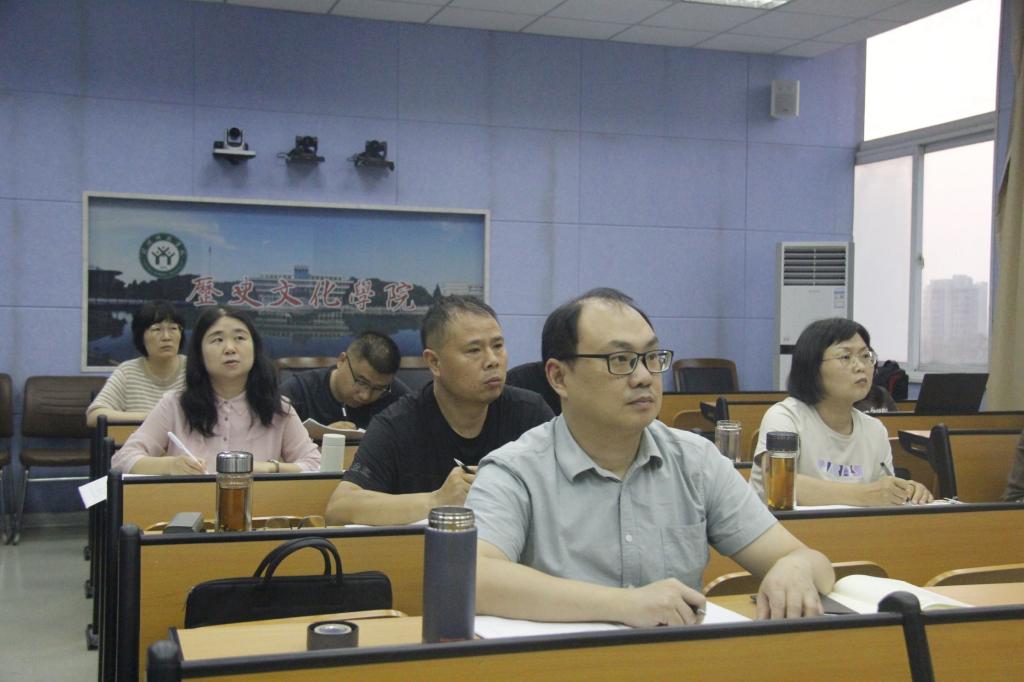随后,新入职教师依次进行了课堂教学展示:刘文文老师以明清水利史为例,讲授历史文献检索的实践应用;张帅奇老师从夏商周时期的祖先崇拜与宗教意识、阴阳五行观念的萌芽,到西周末年宗教思想的动摇,进行了系统讲解;杨文超老师介绍了辨伪学的发展历程及古史辨派的形成;高天老师则围绕文化产品开发展开教学。各位教师立足学科特色,巧妙融入思政元素,在专业知识传授中自然传递家国情怀、科学精神等价值理念。