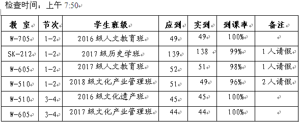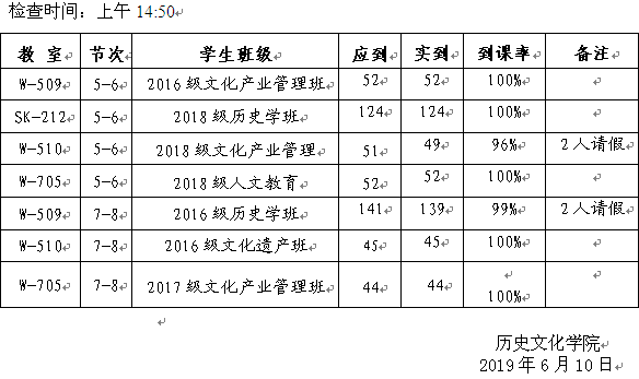 为进一步规范教学管理,维护正常教学秩序,确保教学工作顺利开展,2019年6月10日,金年会官网教学自查小组对上课班级师生到课情况进行了检查,现通报如下: