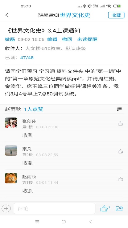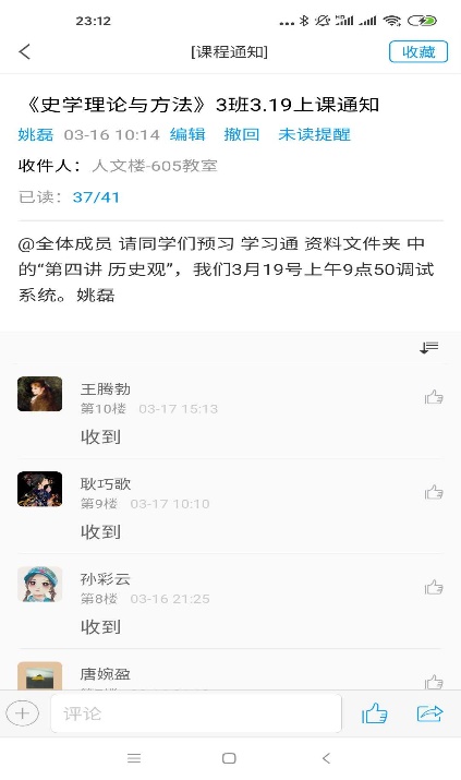 丰富的网络资源有效解决了学习资料的问题,为学生的自主学习、深入学习提供了良好条件。资源库搭建后,姚老师督促学生提前下载,上课讨论或者做作业,如下: