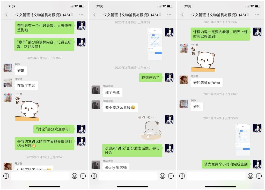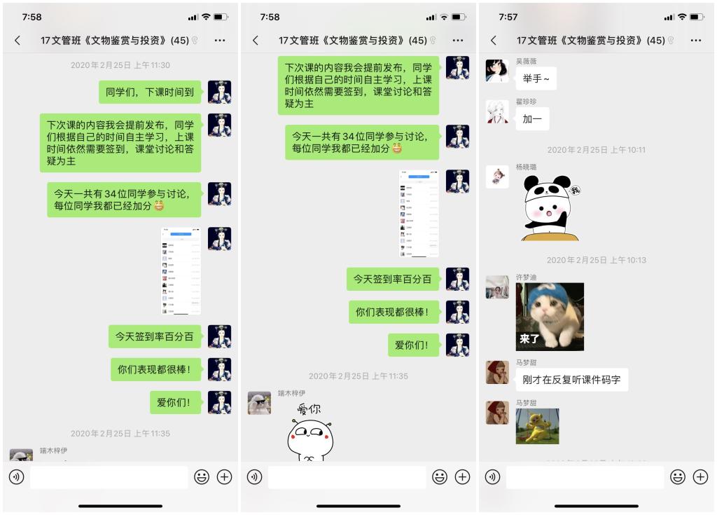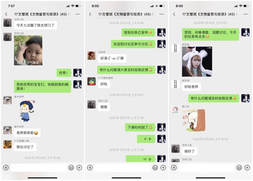 同时,为了保证所有同学都能有效地利用线上教学资源,开课前,她建立了班级微信群,反复跟班内同学沟通开课时间、课堂要求、学习任务等,最终形成了利用微信群发布课程预告、利用学习通发布作业、测试等学习任务,并录制速课、上传课件、组织课堂讨论等学习模式,从2月份开始第一次网上授课以来,便受到了学生们的热烈欢迎。