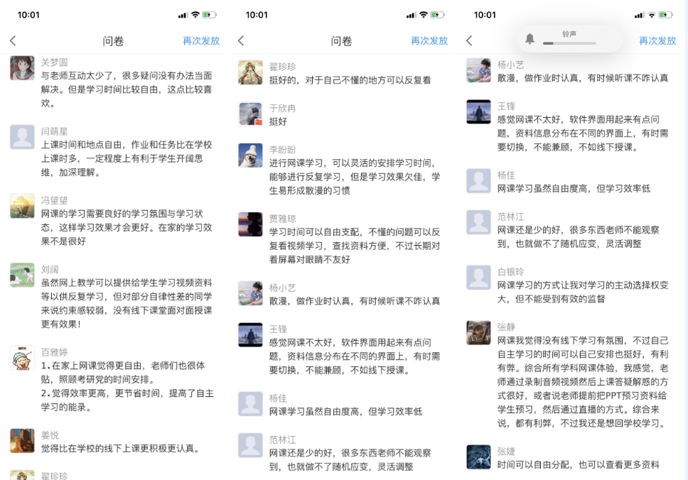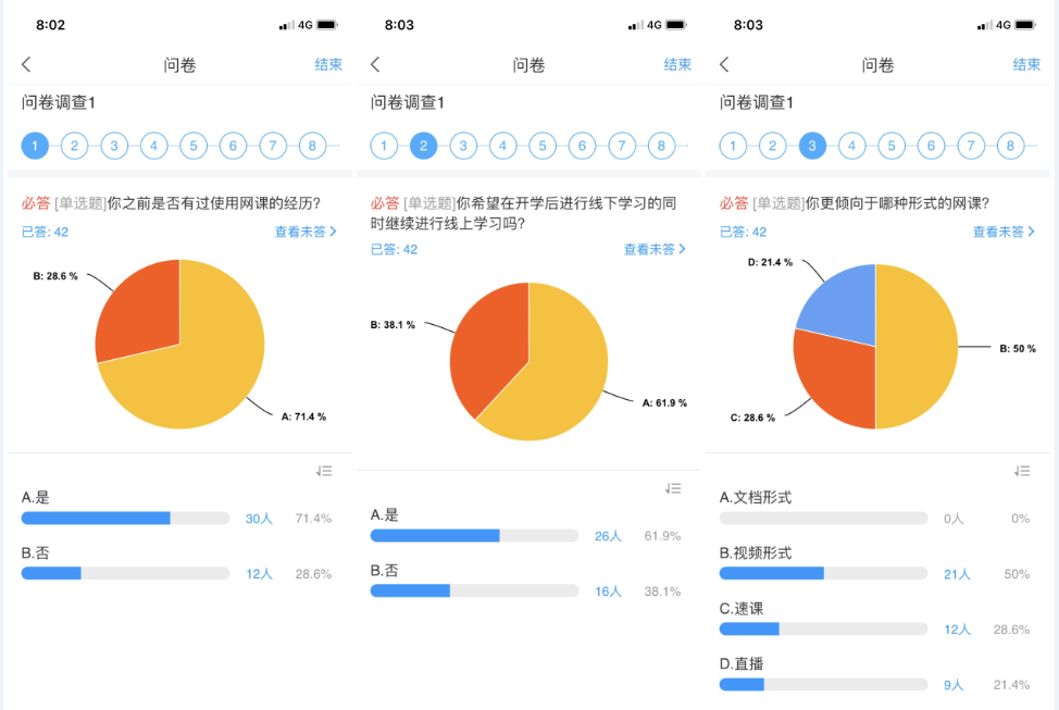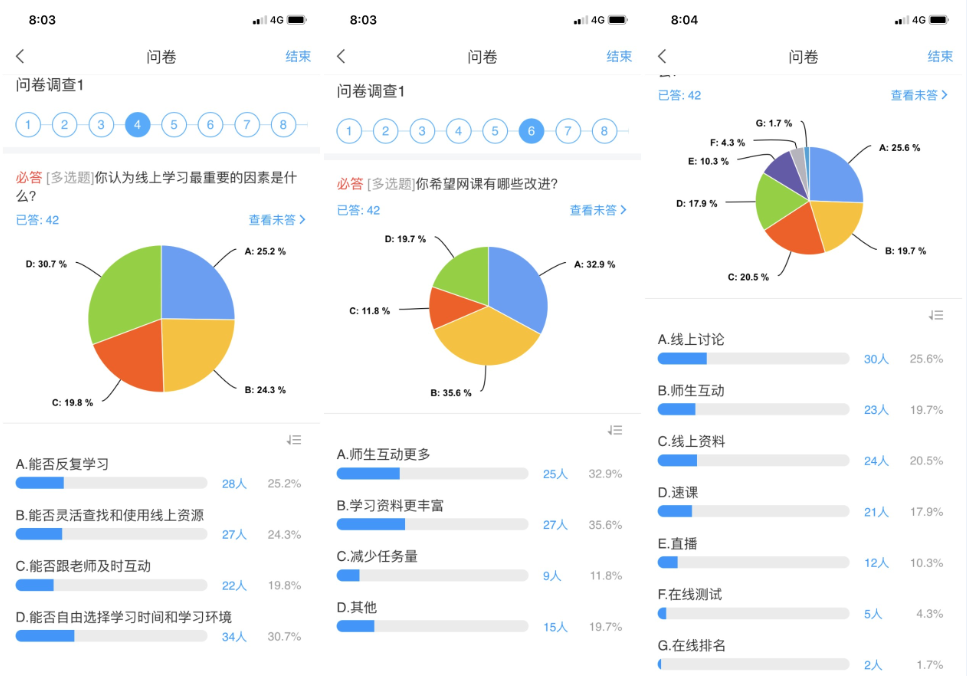 虽然前期授课任务都顺利完成了,但是在进行网上授课一段时间后,为了更好地了解学生们的网上学习效果、学习感受,邹维一老师还是进行了一系列在线问卷调查,以掌握授课情况,不断及时调整授课方式。