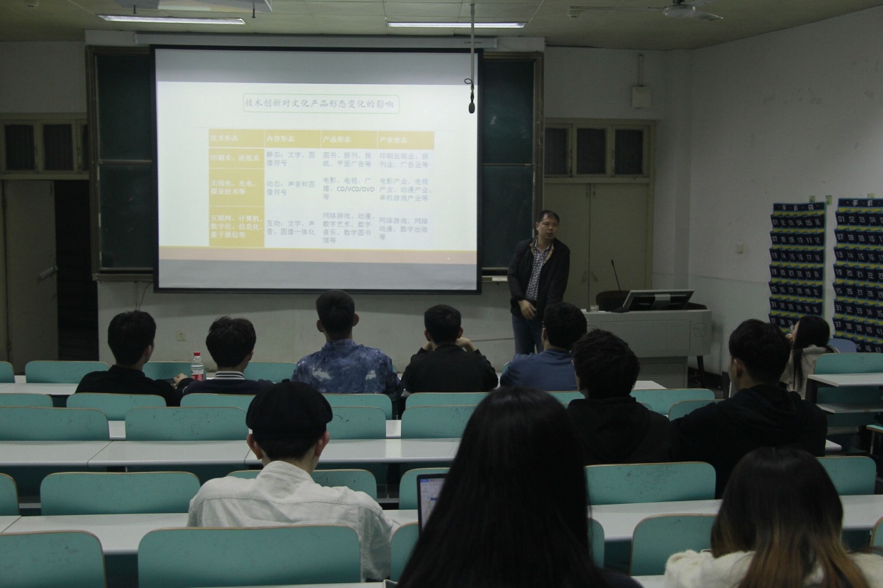 315日晚,文化产业管理系主任李国东博士在人文楼509教室作了题为科技创新与文化产业管理的学术讲座,此次讲座由副院长孙炜主持,文化产业管理专业同学到场听讲。