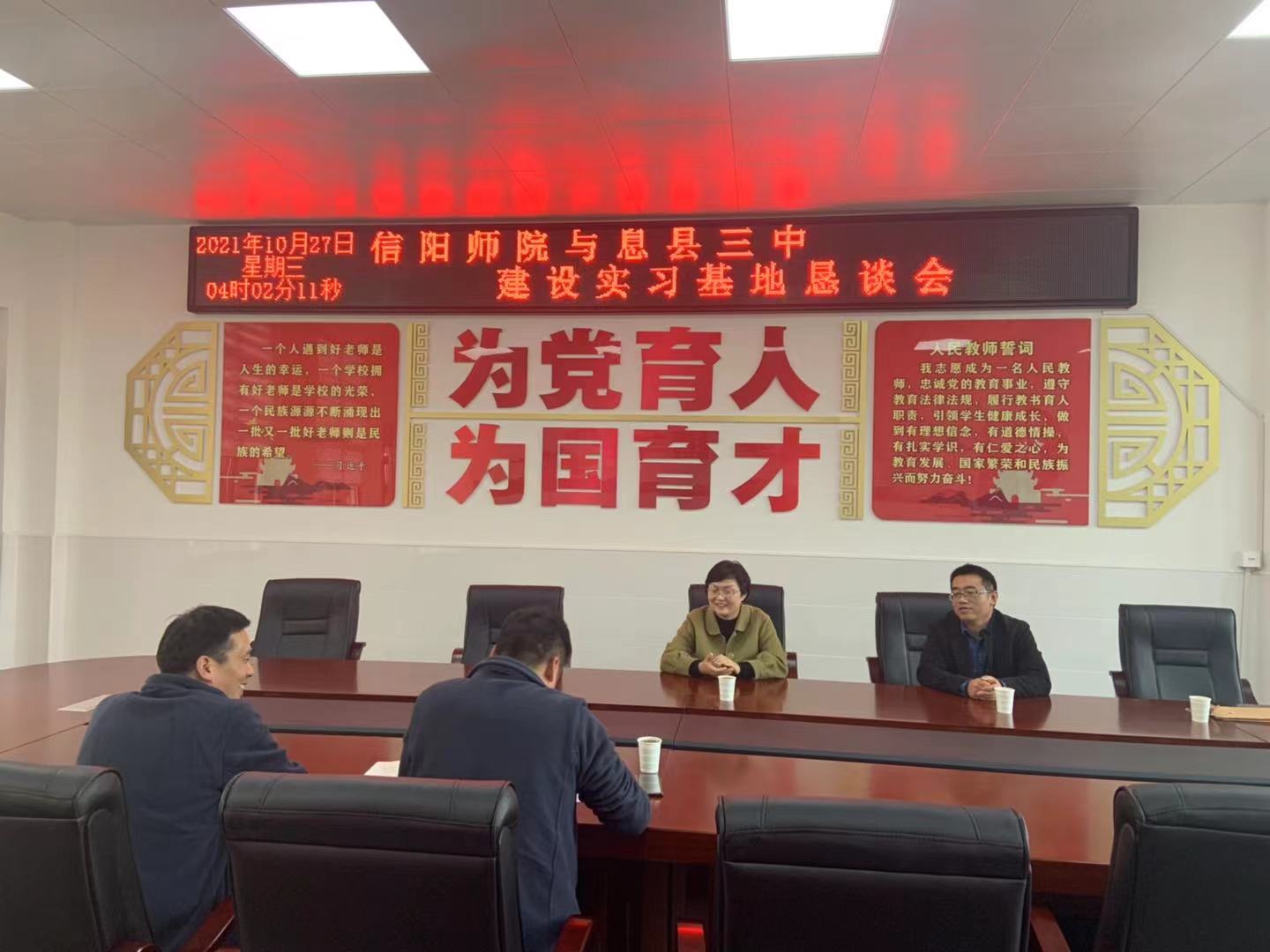 10月27日,信阳师范学院金年会诚信信誉至上代表金年会官网教务处,与息县五所中学顺利签署毕业生实习基地建设合作协议。