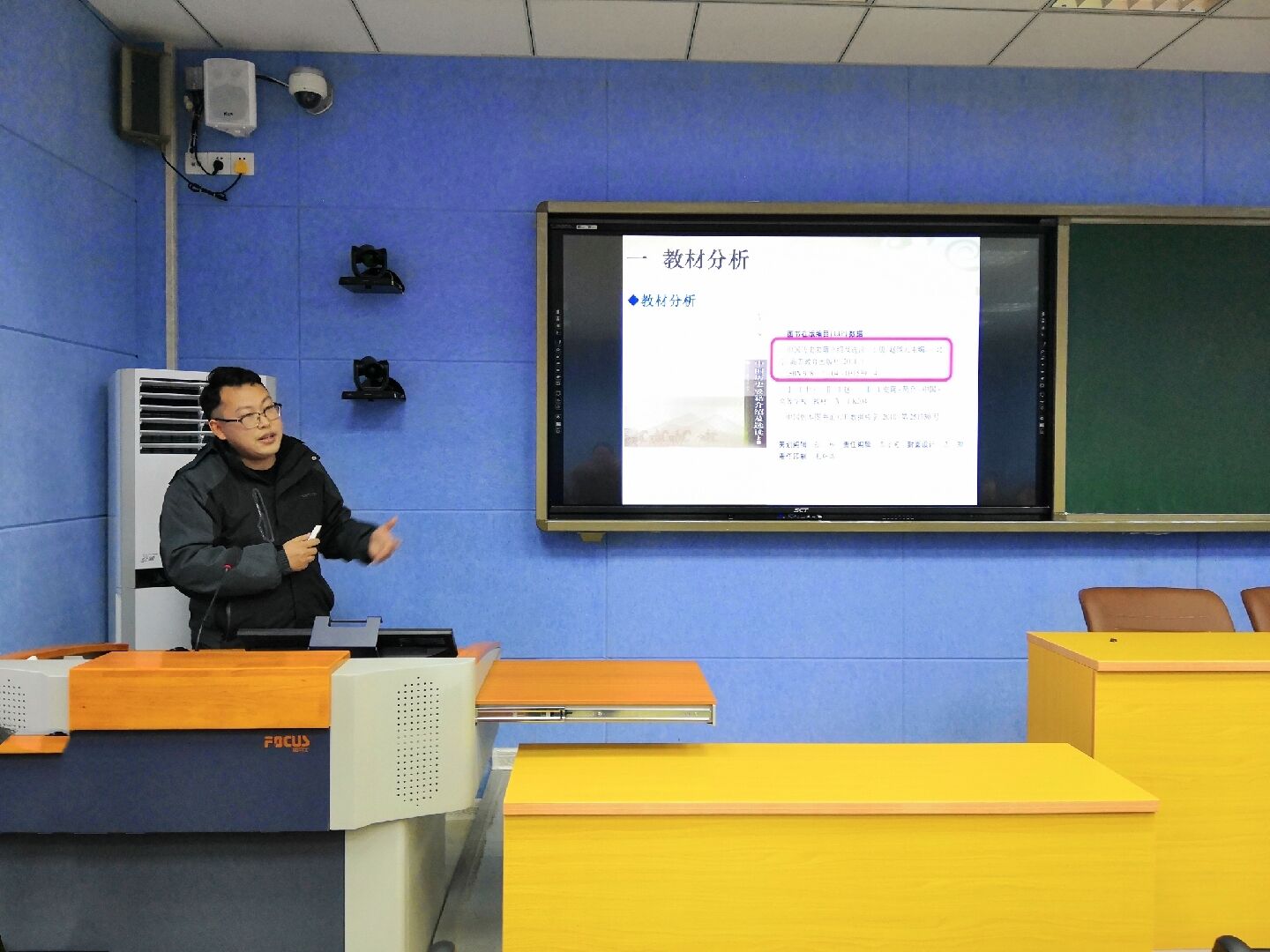 经过为期两周的随堂听评课和教研室推荐,文化产业管理教研室李国东老师、中国近现代史教研室张望老师、中国古代史教研室王娟老师、世界史教研室的吕振纲老师、人文教育教研室姚磊老师参加了本次说课比赛。他们熟练运用多媒体,采用理论剖析、案例解说等方式,对管理学、冷战时期的国际关系、学术论文材料的使用、中华人民共和国的诞生等课堂设计进行了精彩讲解。