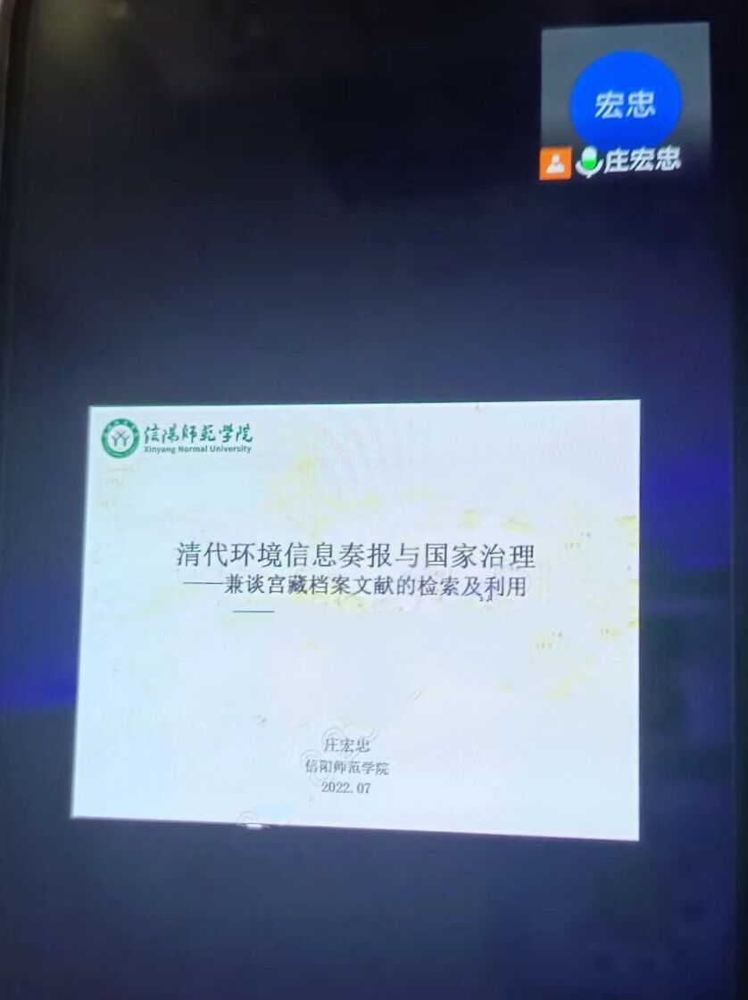 7月8日晚,庄宏忠博士于腾讯会议平台上做了题为“清代环境信息奏报与国家治理——兼谈宫藏档案文献的检索及利用”的线上人文视野讲座,全程历时两个多小时,金年会官网2020级本科生在线听讲。