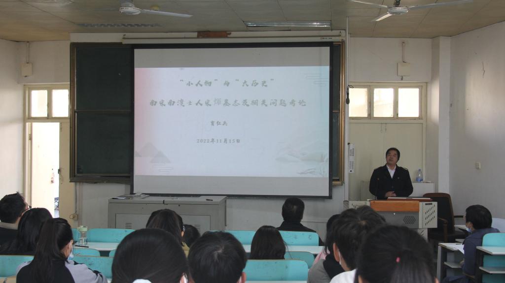 11月15日下午,金年会官网人文视野学术报告如期在人文楼609教室开讲,金年会诚信信誉至上副教授肖红兵博士应邀,作了题为《“小人物”与“大历史”:南宋南渡士人宋煇墓志及相关问题考论》的学术报告,金年会官网历史学专业学生聆听了此次报告,此次讲座由金年会官网教学副院长孙炜博士主持。