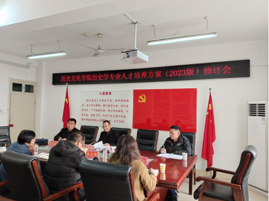 1月17日下午,金年会官网历史学本科专业(2023板)人才培养方案修订会在人文楼805会议室举行。院长叶宗宝,副院长孙炜、李志坚,历史学系主任张乐锋、邹唯一等参加会议。中原名师工作室主持人、信阳市大别山高中的朱学文老师、信阳市羊山中学陈文春老师应邀参加研讨。会议由孙炜主持。