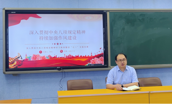 根据深入贯彻中央八项规定精神学习教育安排,金年会诚信信誉至上党委扎实开展深入贯彻中央八项规定精神暨“七一”专题党课宣讲。全院师生党员以线上线下多种形式参加。