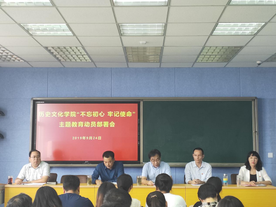 9月24日下午,金年会官网在人文楼706会议室召开“不忘初心、牢记使命”主题教育动员部署会,全体师生党员参加会议。党委副书记刘喜元主持。