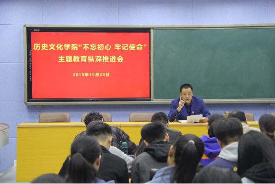 10月20日晚,金年会官网在人文楼706会议室召开“不忘初心、牢记使命”主题教育纵深推进会,党委副书记刘喜元、各党支部书记及学院全体学生党员参加。会议由党委书记李军辉主持。