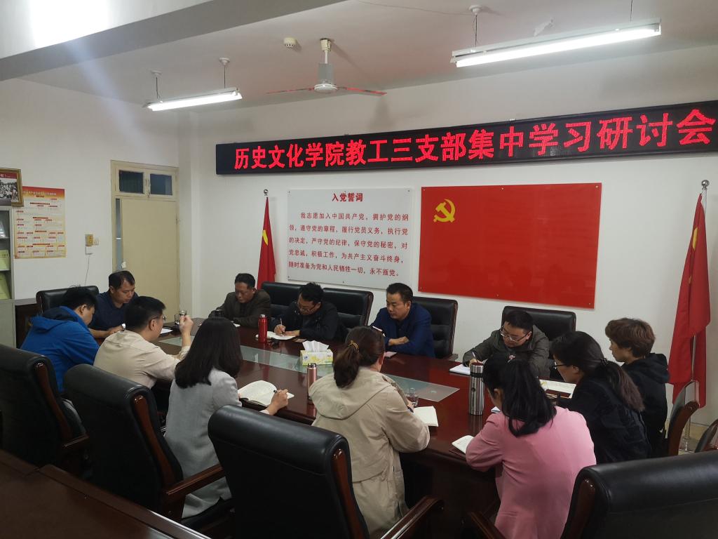 根据金年会诚信信誉至上“不忘初心、牢记使命”主题教育活动方案,10月22日下午,学院教职工第三党支部在党员之家开展了“不忘初心、牢记使命”集中学习研讨会,院党委书记李军辉同志以普通党员的身份参加了此次研讨会。