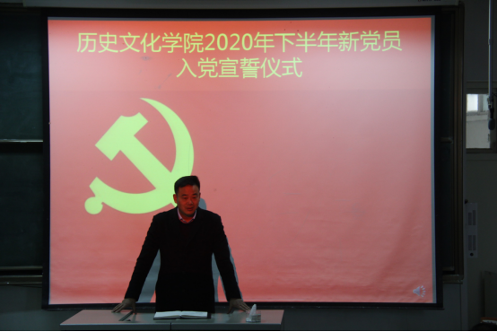 12月8日下午,金年会官网在人文楼609教室举行了2020年下半年预备党员宣誓仪式,院党委书记李军辉、副书记刘喜元,支部书记付亚男、邓皓,2020年下半年转正党员、新发展党员及部分入党积极分子参加。仪式由刘喜元主持。