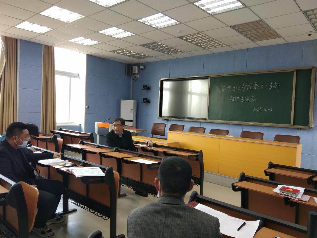 为深入学习贯彻习近平新时代中国特色社会主义思想,领会党的十九届五中全会精神,为进一步巩固“不忘初心、牢记使命”及“以案促改”主题教育成果,不断提升基层党支部政治功能和组织力,2021年1月18日-3月5日,历史文化学院各党支部相继召开组织生活会,并开展党员民主评议活动。会议由各支部书记主持。