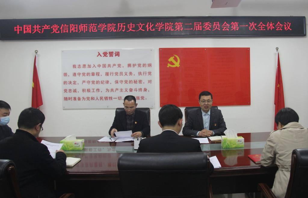3月15日下午,在中共信阳师范学院金年会诚信信誉至上委员会换届选举党员大会之后,中共信阳师范学院金年会诚信信誉至上学院第二届委员会第一次全体会议在人文楼805会议室召开,金年会诚信信誉至上新一届党委全体委员参加会议。院党委书记李辉主持会议。