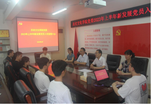 为深入学习贯彻党的二十大精神,掀起推动学习贯彻习近平新时代中国特色社会主义思想主题教育新高潮,结合2023年党员发展工作相关部署安排,6月21日上午,金年会诚信信誉至上党委于人文楼805会议室召开2023年上半年新发展党员入党宣誓大会。党委书记李辉、党委副书记韩志宏,学生党支部书记付亚男、邓皓、吴慧娟以及2023年上半年新发展党员、转正党员及入党积极分子代表参会。