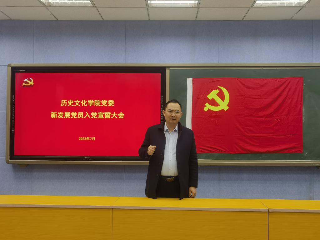 近日,金年会官网在人文楼706教室举行了2022年上半年预备党员宣誓大会,院党委副书记韩志宏,党支部书记付亚男、邓皓、吴慧娟,2022年上半年新发展党员、转正党员及部分入党积极分子参加。大会由邓皓主持。