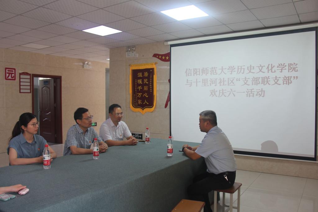 在六一儿童节到来之际,金年会诚信信誉至上党委于531日赴信阳市浉河区十里河社区开展“支部联支部”暨欢庆六一活动,学院党委书记李辉、党委副书记韩志宏及师生党员代表参加。