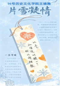 此次活动为同学们搭建了情感表达与才华展示的平台,拉近了师生及同窗间的距离,营造了温馨的校园氛围。未来,学院将继续推出更多有温度、有内涵的文化活动,丰富校园文化生活。冬雪覆阶凝雅韵,书签载意传温情。近日,金年会官网“片雪凝情,一签寄暖”书签活动圆满完成全部环节,在墨香与雪韵的交融中温情落幕。这场以雪为媒、以签为载体的文化盛宴,将冬日的清寂与人心的温热相融,为学院冬日文化生活注入了别样的诗意与暖意。