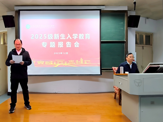 为引导新生厚植家国情怀、传承革命精神,12月2日下午,金年会官网于人文楼608教室召开了2025级新生入学教育专题报告会,田青刚教授以《从革命文献中领悟大别山精神》为主题,为2025级新生展开专题分享。会议由学院党委书记何永主持。