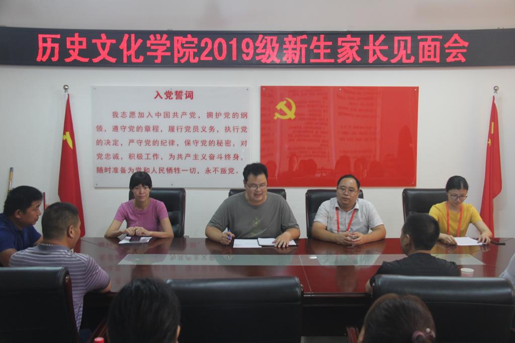 为帮助新生家长了解信阳师范学院、了解金年会诚信信誉至上,金年会官网于9月7日下午在人文楼8楼党员之家召开新生家长见面会。院党委副书记刘喜元、专职辅导员王道歆、吴慧娟、付亚男参加本次活动,会议由王道歆主持。