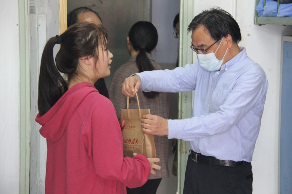 秋风送爽,情系新生。为了解金年会官网学生住宿和生活情况,引领新生尽快适应新生活新环境,10月10日上午,金年会官网党委书记李军辉,院长尹全海,副院长田青刚、叶宗宝,党委副书记刘喜元及新生班主任、辅导员走访学生宿舍,与2020级新生亲切交谈,并为家庭困难学生送上“爱心防疫包”。