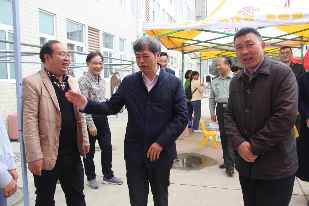 领导们询问了新生军训工作的进展情况,实地查看了各连队训练情况,详细了解了学生的身体状况以及学生在训练过程中遇到的问题和困难;领导们对教官的悉心指导表示感谢,对新生刻苦训练的精神风貌给予充分肯定;领导们还看望了在服务站值班的后勤人员,并对他们提出要求,希望大家做好后勤保障工作,确保军训顺利进行。