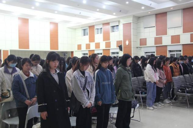 讲座结束后,辅导员邓皓带领在场全体学生一起进行缅怀革命英烈的默哀仪式,向为祖国献出生命的英烈表达深切的哀悼。
