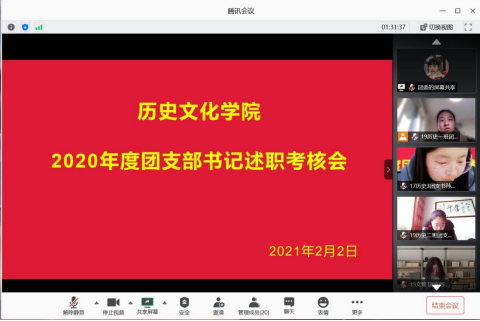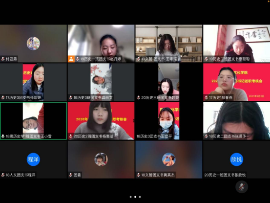 为持续加强学院基层团组织建设,激发基层团组织活力,落实基层团支部建设方向,加强团支部集体荣誉和团队精神,金年会诚信信誉至上团委于2月2日在腾讯会议上开展了2020年团支部书记述职大会,团委书记付亚男和各团支部书记参加会议。