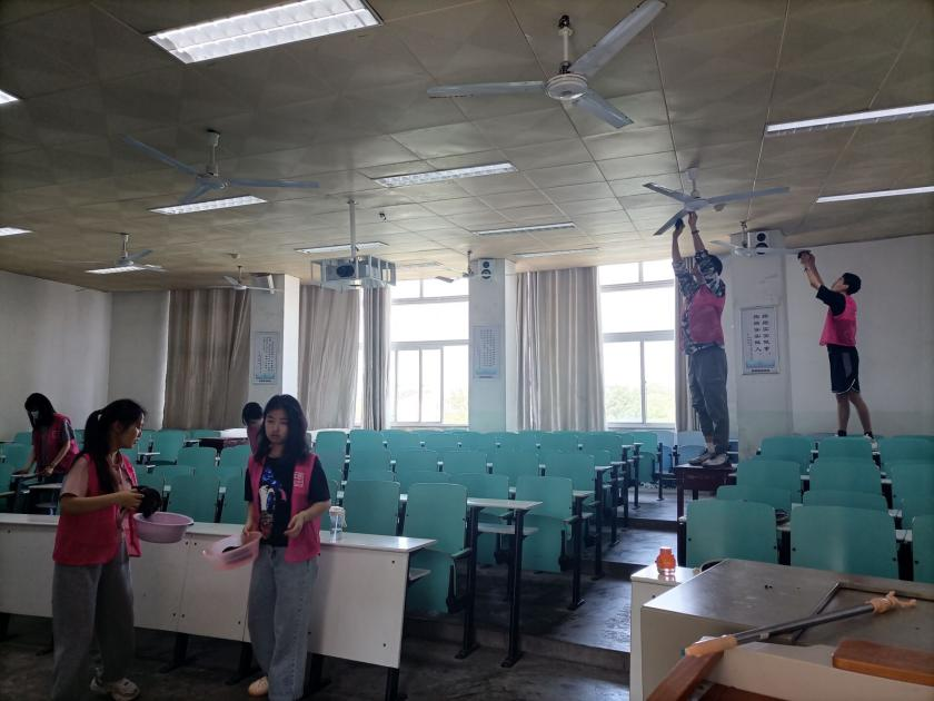 为按时完成劳动任务,提升劳动质量与效率,青校学子上午八点四十便于人文楼510集合,领取各自任务,打扫金年会官网专业课教室,其中包括扫地、拖地、清理垃圾、擦拭电风扇、玻璃等。分工结束后,同学们便积极投入紧张的劳动之中。在小组长的带领下,同学们对金年会官网教室人文楼509、510、609以及社科楼212进行干净彻底的打扫。义务劳动期间,大家充分发扬不怕苦、不怕累、甘于奉献的精神品质,认真负责、分工明确,将教室每个区域打扫的十分干净整洁,室内环境得到明显改善,焕然一新。