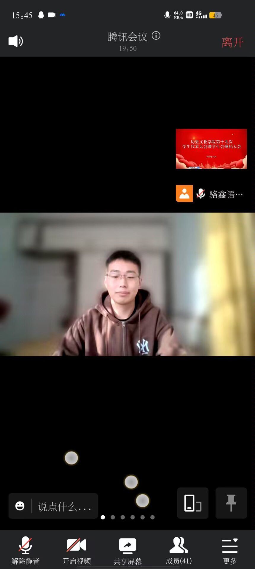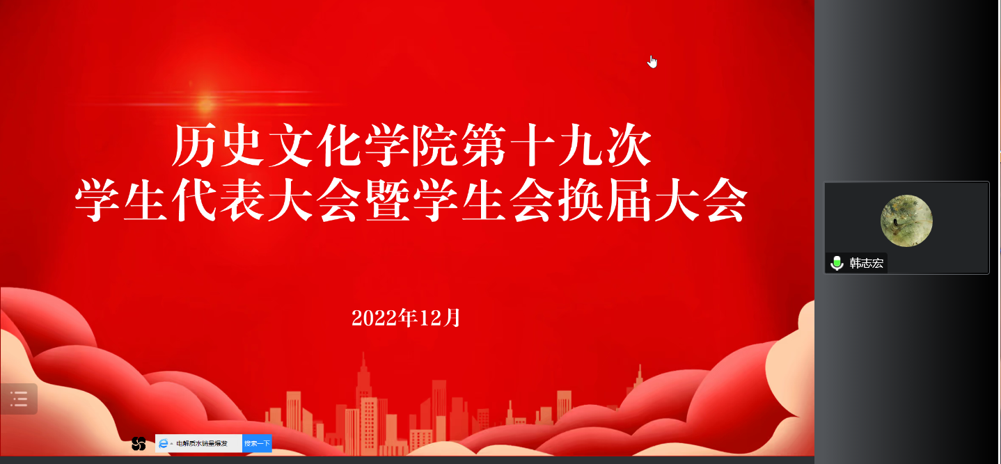12月14日下午,金年会官网于腾讯会议召开第十九次学生代表大会暨学生会换届大会,学院党委副书记韩志宏,团委老师付亚男、吴慧娟、邓皓,学生会候选人员和学生代表共同参会。
