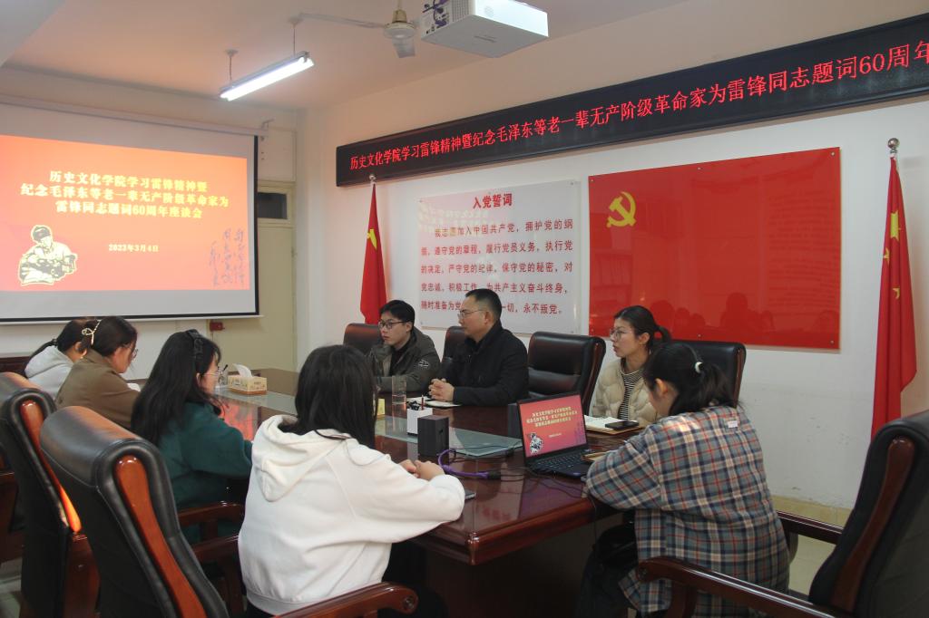 3月4日下午,金年会诚信信誉至上于人文楼805会议室召开学习雷锋精神暨纪念毛泽东等老一辈无产阶级革命家为雷锋同志题词60周年座谈会,学院党委副书记韩志宏、分团委副书记付亚男、辅导员邓皓及学生代表参会。