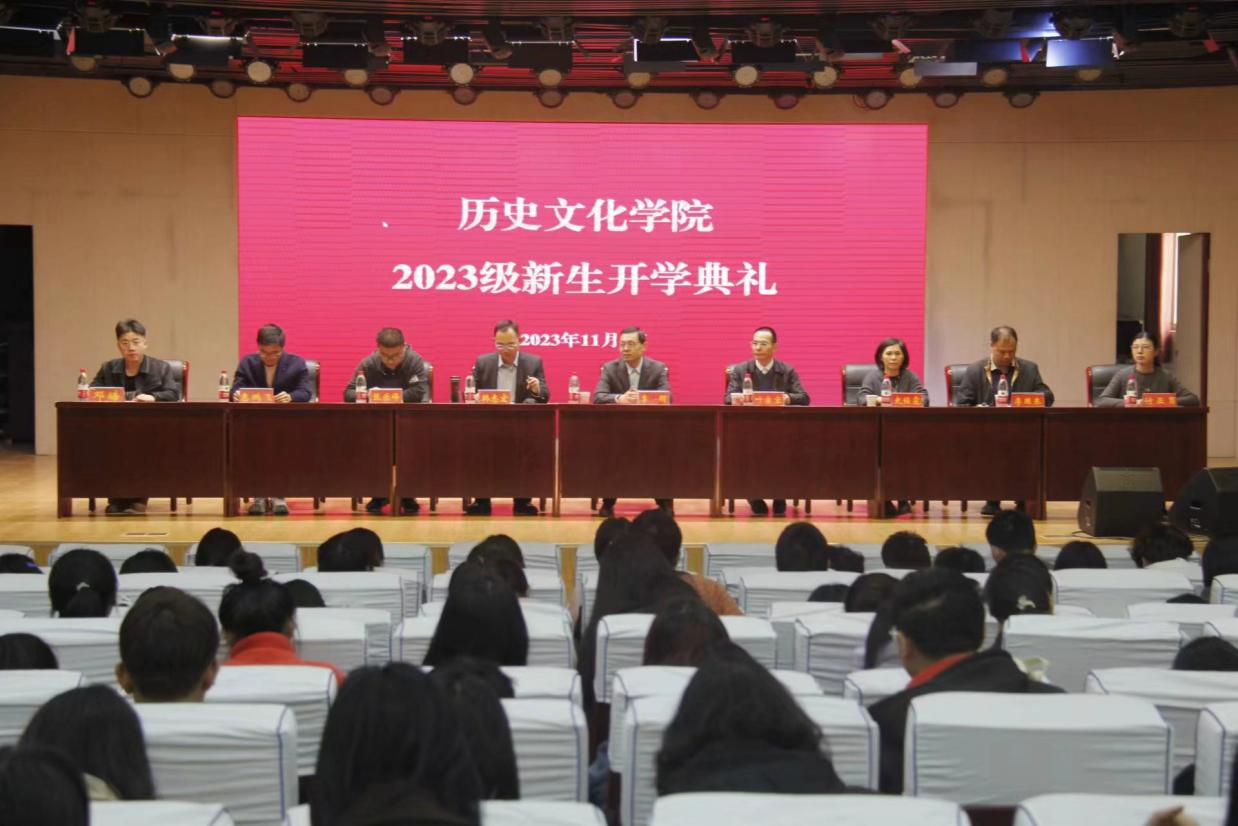 典礼伊始,师生共同观看“金年会jinnianhuicom专题片”,了解学校发展历程和辉煌成就。接着,全体起立,奏唱国歌。教师代表张乐锋发言,他向刚踏入大学校门的新生们表示热烈的欢迎与祝贺,为新生讲解历史学的意义,希望作为新时代的知识青年要勇于担责、胸怀天下。2022级本科生代表李东泽分享了大学学习和生活经验,愿新生与学校共成长,与祖国共命运。2023级研究生代表李璨萱表示要珍惜时光、接续奋斗。李辉代表全院师生对2023级新生表示热烈欢迎,回顾了学院十九年的发展历程、优势特色以及近年来取得的显著成绩,并对新生提出了四点期望:一要博学笃志、精勤不倦,二要锤炼品格,三要知行合一、行万里路,四要志存高远、心怀国家。他勉励大家在金年会jinnianhuicom学真知、悟真理、增才干、长本领,珍惜时光、不负韶华,为强国建设和中华民族伟大复兴贡献自己的青春力量和智慧。