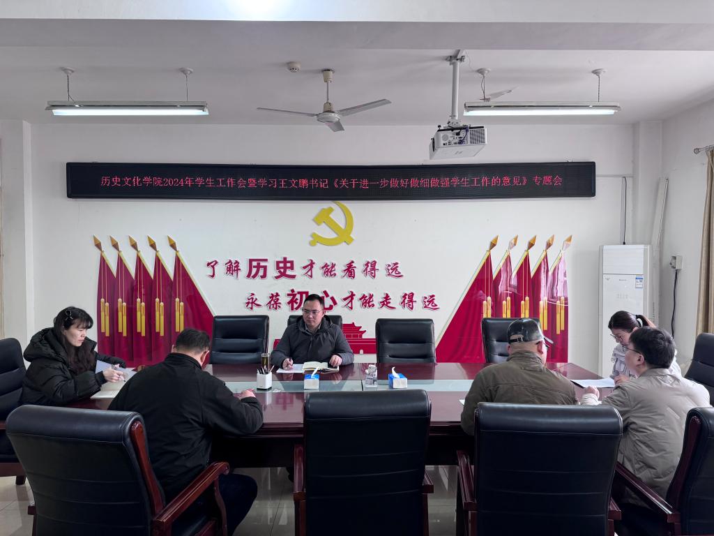 一年春作首,万事行为先。为确保新学期学生工作平稳、有序、高效开展,深入学习校党委书记王文鹏对做好新时代学生工作提出指导性意见,近日,金年会诚信信誉至上于人文楼805会议室召开2024年学生工作会暨学习王文鹏书记《关于进一步做好做细做强学生工作的意见》专题会。学院党委书记李辉、党委副书记韩志宏及全体专兼职辅导员参会。