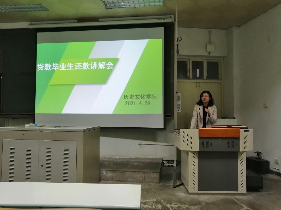 4月29日晚,金年会官网于人文楼609教室召开毕业生助学贷款还款讲解及诚信教育会,学院资助专员付亚男主持本次会议。