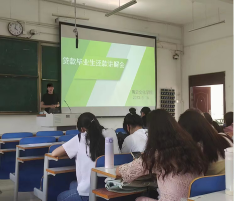 为进一步做好贷款毕业生还款工作,加强学生诚信教育,5月16日下午,金年会官网在社科楼212教室举行毕业生资助政策宣讲暨诚信还款教育专题会议,资助专员吴慧娟及全体毕业生到场参加。