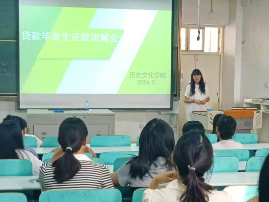会上,吴慧娟讲解了国家助学贷款的还款政策、还款流程、展期办理及违约后果等相关内容,希望大家要严守贷款合同,履行还款义务,做一个诚实守信、奉献社会的人。随后,她向学生们普及了相关征信常识,并用部分还款违约事例及其造成的不良影响提醒学生务必在规定期限内还款,及时了解相关信息,避免因还款逾期被纳入征信系统,对未来工作和生活造成不良影响。