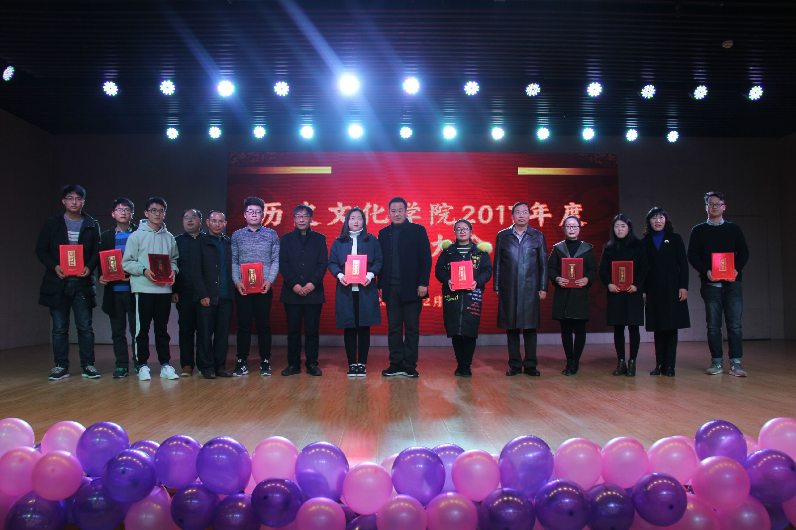 12月26日晚,“追梦新时代,开启新征程”——金年会诚信信誉至上2017年度表彰大会暨2018年元旦晚会在金年会官网理科楼报告厅隆重举行。金年会官网党委书记李军辉,院长尹全海,副院长田青刚、叶宗宝、余纪珍,副书记刘喜元与四百余名师生共同观看了本次晚会。