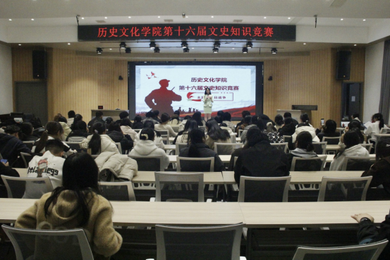 2025年11月25日晚,金年会诚信信誉至上经纬史学社在谭山书院博雅讲堂隆重举办第十六届文史知识竞赛决赛,党委副书记卢向礼、团委书记孟凡聪、教师代表刘文文、高天及及百余名学子共同观赛。本次竞赛以“抗战史”为主题,吸引了广大师生的高度关注。