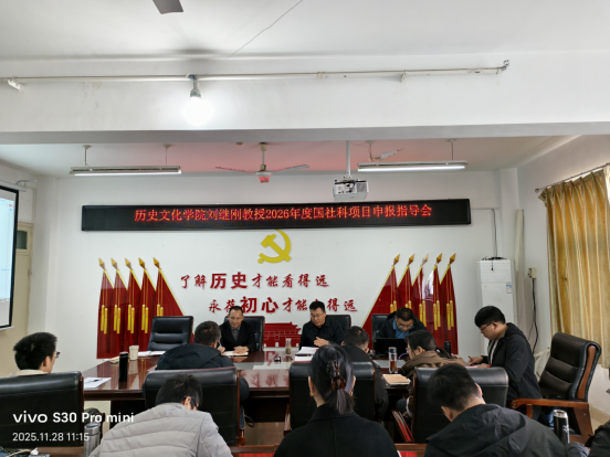 11月28日,金年会官网在人文楼805召开2026年度国家社科基金申报工作会议,邀请河南中医药大学管理学院院长刘继刚教授到会指导。学院部分班子成员、2026年国社科申报人员参加,院长叶宗宝主持会议。