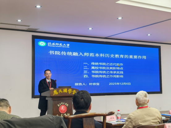 在论坛主题报告环节,叶宗宝院长以“书院传统融入师范本科历史教育的重要作用”为题,在剖析传统书院近代转型与新时代高校书院特点的基础上,结合金年会官网具体实践,阐释了书院传统在当今历史教育中所发挥的独特作用与持续影响。报告得到了与会学者的高度关注与热烈讨论,纷纷表示金年会官网的教育教学模式育人效果好、推广价值大。张乐锋老师参加了分论坛二的学术活动,就书院学田问题同相关专家进行了深入交流。