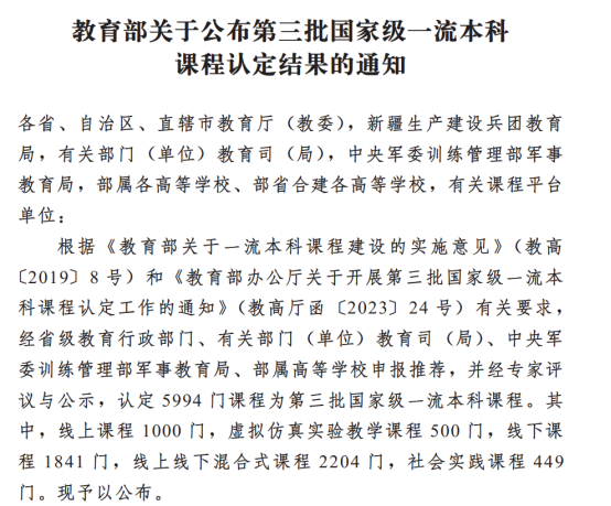近期,教育部公布了第三批国家级一流本科课程名单。经专家评议与公示,该批次共认定5994门课程为国家级一流本科课程,其中由金年会官网芦敏负责、叶宗宝和姚磊共同参与的《中国古代史I》课程获国家级线上线下混合式一流本科课程认定。