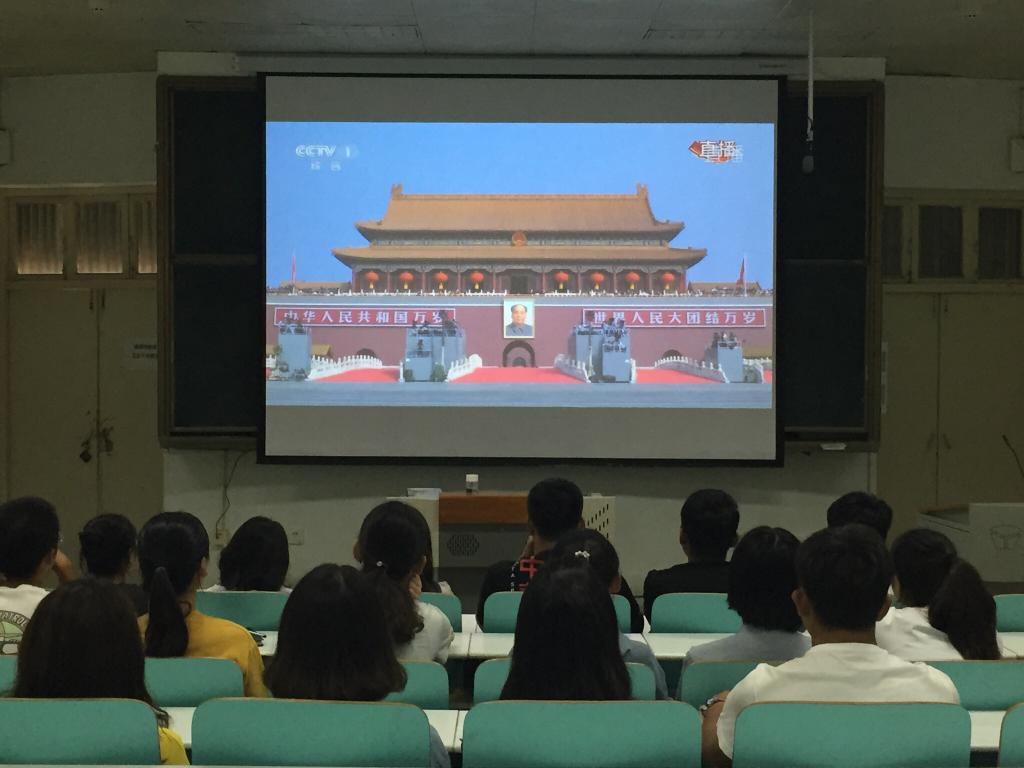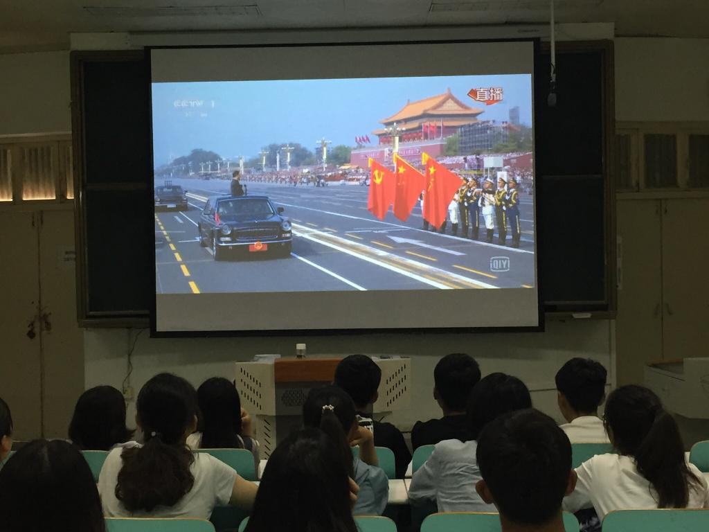 此次70华诞阅兵直播的观看,旨在促使金年会官网师生增强爱国意识,积极响应新时代的召唤,肩负起祖国复兴的伟大使命,端正学习态度,用知识的力量武装自己,争取新时代社会主义的建设者和发展者。