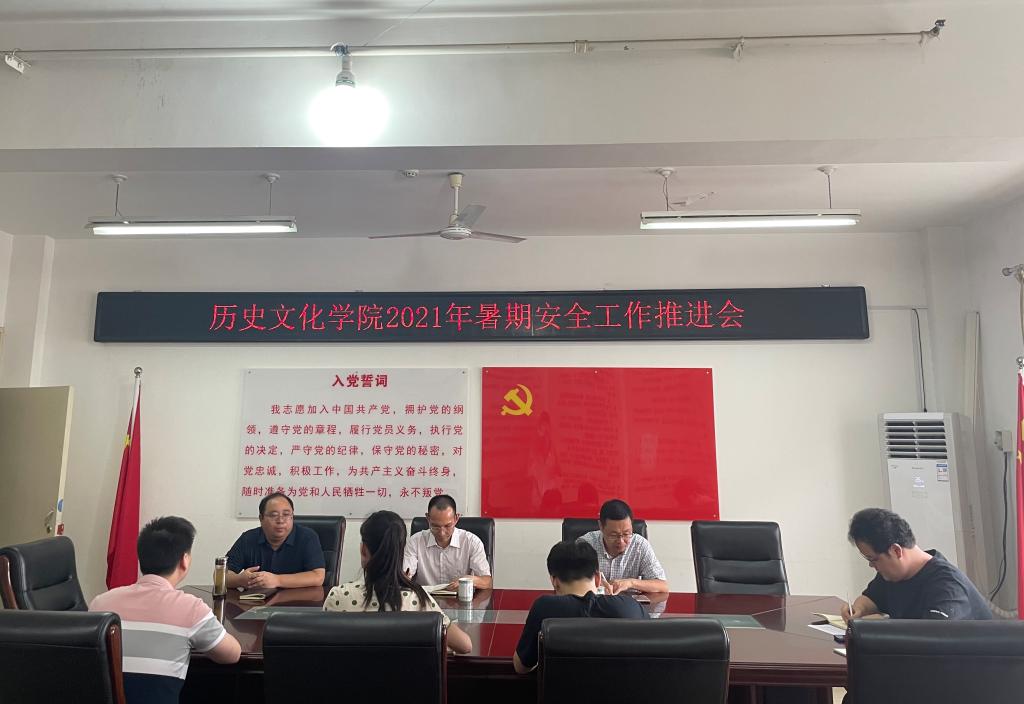 7月23日上午,金年会官网在人文楼805会议室召开暑期安全工作推进会,安排部署学院暑期安全工作。院党委书记李辉,院长叶宗宝,党委副书记刘喜元,值班人员及全体辅导员参加了会议。