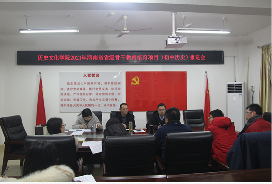 12月24日下午,2021年河南省省级骨干教师培育(初中历史)项目第三次工作推进会在金年会诚信信誉至上人文楼805举行。金年会官网党委书记李辉,院长叶宗宝,副院长孙炜、李志坚及项目筹备组成员出席了会议。