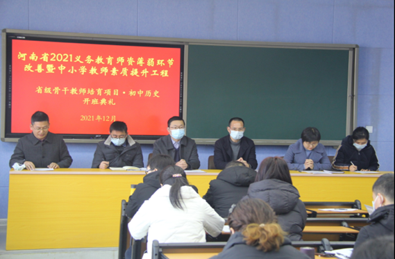 12月29日上午,2021省级骨干教师培训项目初中历史班,在信阳师范学院金年会诚信信誉至上顺利开班。金年会诚信信誉至上党委书记李辉,院长叶宗宝,副院长孙炜、史经霞、李志坚及张乐锋、邹维一、卞卡等老师出席开班典礼。来自郑州市、漯河市、南阳市、平顶山市、驻马店市等我省多个县市区的基础教育一线教师欢聚一堂,共同开启珍贵的培训交流时光。开班典礼由教学副院长孙炜主持。