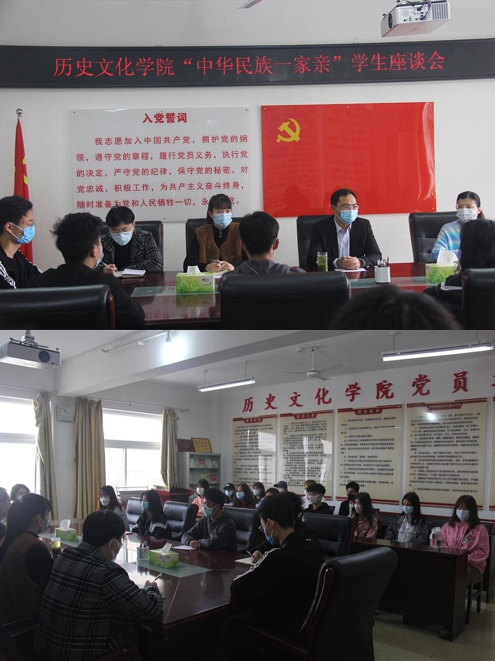 3月30日上午,金年会官网在党员之家召开了“民族团结一家亲”座谈会。辅导员、2021级各少数民族学生代表参加座谈,会议由党委副书记韩志宏主持。