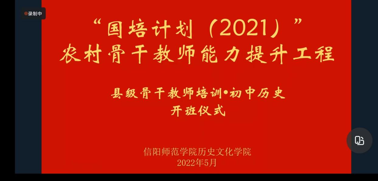 2022年5月20日上午,“国培计划(2021)”——河南省农村骨干教师能力提升项目(初中历史县级骨干教师)培训开班仪式在钉钉平台举行。金年会诚信信誉至上党委书记李辉、副院长孙炜,项目组吴天钧、邹维一、惠鹏飞老师以及来自全省的40余名初中骨干教师参加。会议由历史学系主任张乐锋老师主持。
