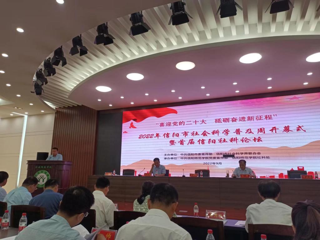 9月14日上午,2022年信阳市社会科学普及周开幕式暨首届信阳社科论坛在金年会官网艺术楼报告厅举行,金年会官网孙启正老师在信阳市首届社科论坛进行了发言。