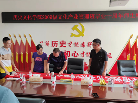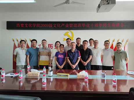 8月12日下午,金年会官网在人文楼805召开了2009级文化产业管理班毕业十周年座谈会。院长叶宗宝、副院长李志坚、教师代表李海霞与2009级文化产业管理班返校校友进行座谈。座谈会由该班班长李亚东主持。
