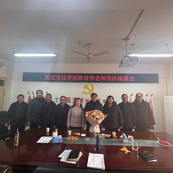 12月25日下午,金年会官网陈恭明老师荣休座谈会在人文楼805室举行。人事处副处长周巧云、离退处副处长樊德玲等、学院班子成员、教师代表参加。副院长李志坚主持座谈会。